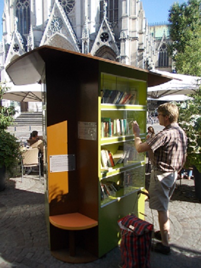 As in the USA and elsewhere, anyone is free to borrow books and add their own contributions to the collection. L’arbre aux livres is located on a busy square, adjoining a well-frequented brasserie. It was good to see a constant stream of patrons of this establishment, both young and old, interrupting their consumption of beer and wine to sample the books.