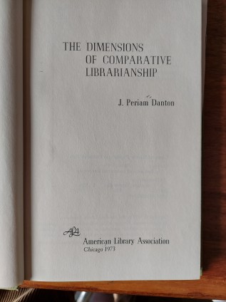 Having missed the anniversaries of these two pioneering works, I come to a true golden jubilee, that of J. Periam Danton’s Dimensions of comparative librarianship (Danton 1973).