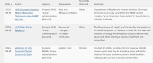 Excerpt from table compiled by Silencing Science Tracker